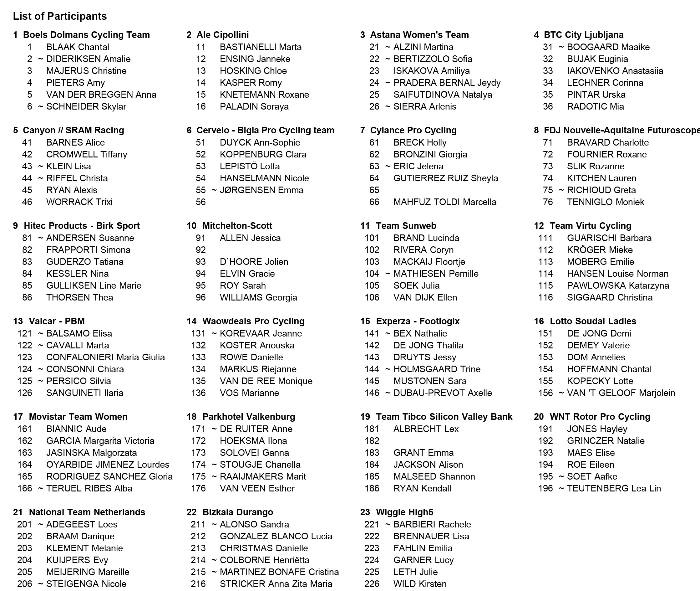 | 23 | Korevaar Jeanne | WaowDeals Pro Cycling | ,, |