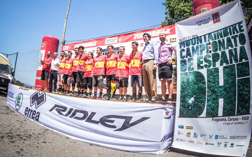 Los nuevos campeones de España de descenso, en el podio de Vigo