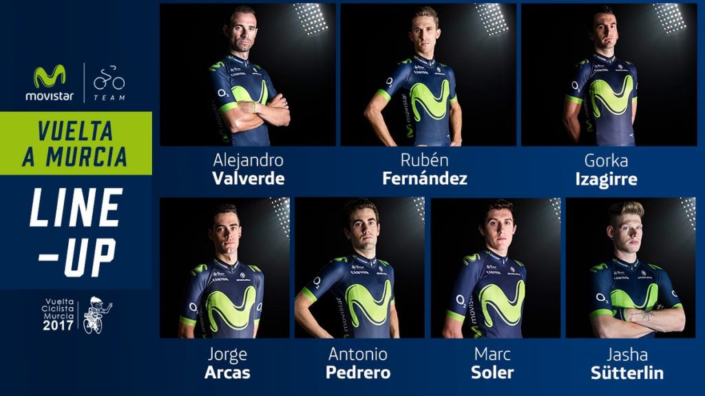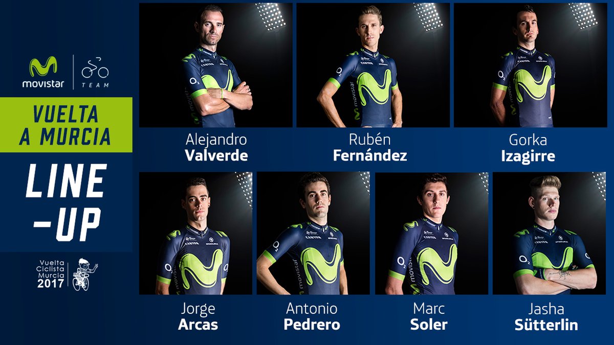 Los ganadores 2016 del TOP Ciclo 21 absoluto y sub-26, respectivamente, Alejandro Valverde y Rubén Fernández -éste en su debut, tras sus lesiones en el invierno– volverán a dar brillo a una prueba en la que la escuadra telefónica, dirigida por José Luis Laguía, contará también con el regreso de Gorka Izagirre, notable en el Tour Down Under hasta que una dura caída le dejó sin opciones de disputar la general. Completan el siete para la cita murciana Jasha Sütterlin, Jorge Arcas, Antonio Pedrero y Marc Soler como informa el grupo de Unzue.
