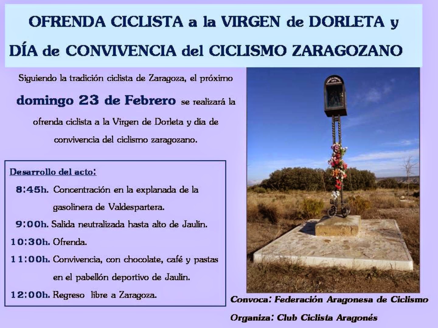 Curiosamente, hay otra imagen de la Virgen de Dorleta muy vinculada con el ciclismo nacional, en este caso el aragonés, ubicada en un modesto pedestal en Jaulín, destino de una tradicional marcha cicloturista-peregrinación-ofrenda con la que inician la temporada año tras año. Y otra imagen similar en Valencia. Y en Cataluña, aunque no sea patrona oficial, la Virgen de Montserrat mantiene una larga relación con los ciclistas y con otros deportistas, quizá por el magnífico escenario que supone la ruta que conduce hasta la ‘Moreneta’.