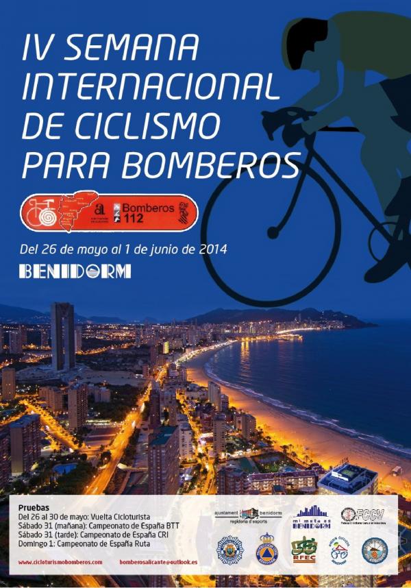 Encuadrados dentro de la IV Semana Internacional de Ciclismo para Bomberos, que se celebra en Benidorm (Comunidad Valenciana) desde el pasado lunes, 26 de mayo, este fin de semana se disputan los Campeonatos de España para Bomberos en carretera, contrarreloj y BTT.
