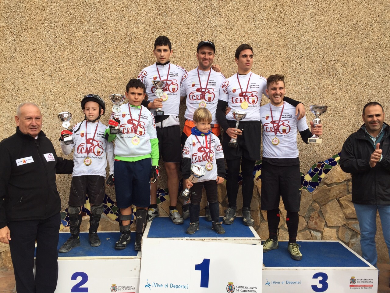 El concejal de Deportes del Ayuntamiento de Cartagena y el presidente de la Federación Murciana hicieron entrega de los maillots de campeón regional a todos los ganadores.
