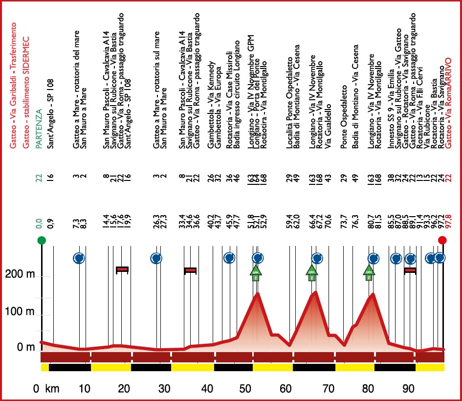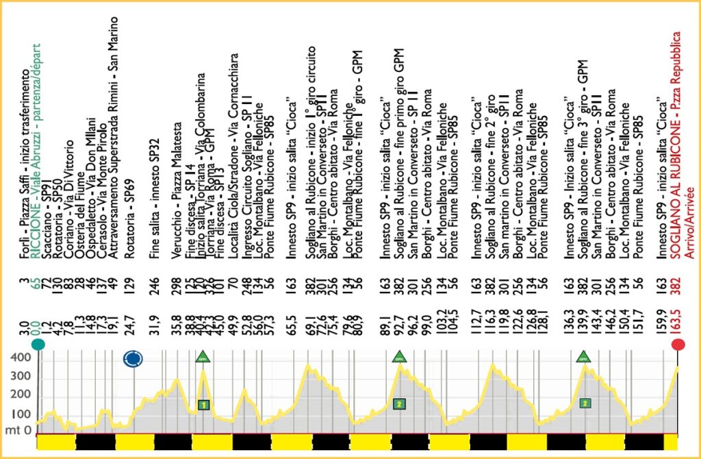 Miércoles 24 de marzo: 2ª etapa, Riccione (11:30)-Sogliano al Rubicone (15:35), 163 km