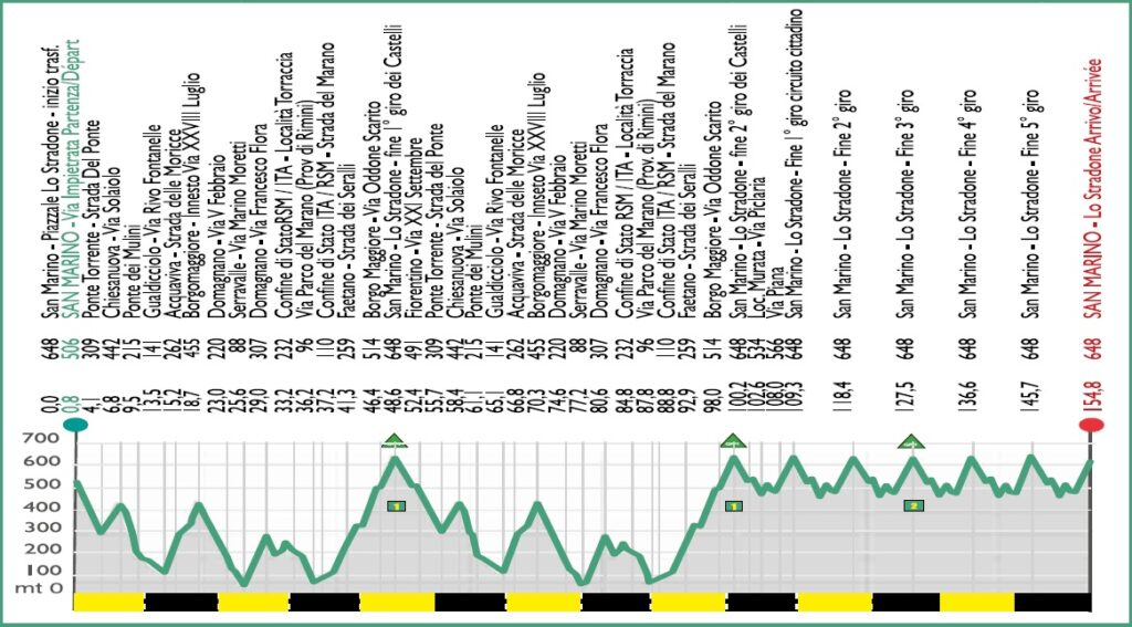Viernes 26 de marzo: 4ª etapa, San Marino (11:30) – San Marino (15:28), 154 km
