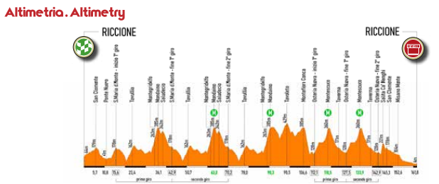 1ª: Martes 21 marzo. Riccione (11:40)-Riccione (15:50), 161,8 kms