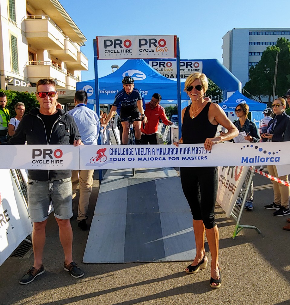La 3ª etapa de la Challenge Vuelta Ciclista a Mallorca para masters, patrocinada por Pro Cycle Hire, con una contrareloj de 7,7 kilómetros para todas las categorías, se ha celebrado con éxito, hoy jueves en el Port de Pollença. Antes de la salida del primer corredor se hizo el acto protocolario de corte de cinta con la presencia de Lisa y Bruce Griffiths, propietarios de ProCycle Mallorca Café, patrocinadores del evento.