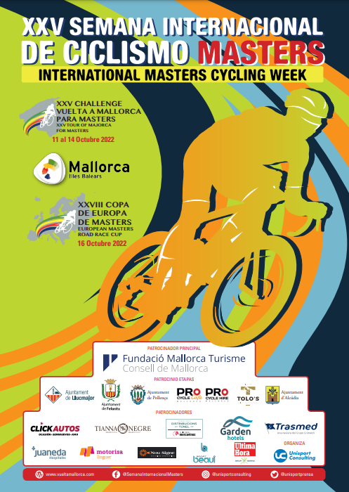 Un año más, en pleno octubre, Mallorca vuelve a ser el escenario de la celebración de la Semana Internacional de Ciclismo en categoría Másters, con la presencia de numerosos corredores locales, nacionales e internacionales, que eligen nuestra isla para disfrutar compitiendo en su deporte favorito. Un pelotón de más de 300 corredores que compiten en categoría UCI Masters 30, 40, 50 y 60.