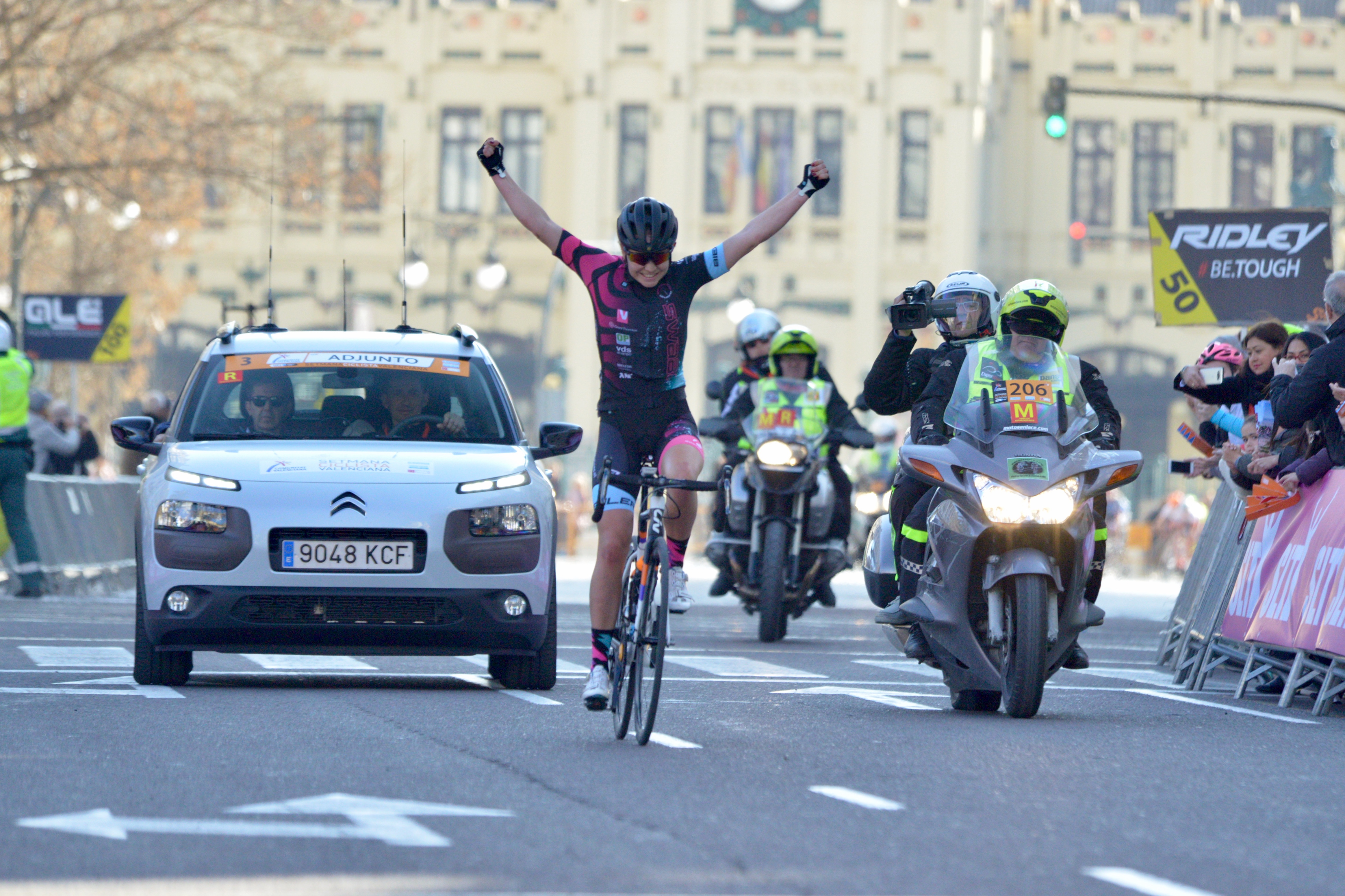 Nicole Steigenga se ha impuesto en la tercera etapa de la Setmana Valenciana, con final en la capital del Túria. La corredora holandesa ha lanzado un soberbio ataque a falta de 20 kilómetros para meta con el que ha logrado una ventaja superior al minuto. Pese al trabajo del pelotón, Steigenga ha logrado cruzar la línea de meta de la Plaza del Ayuntamiento en solitario.