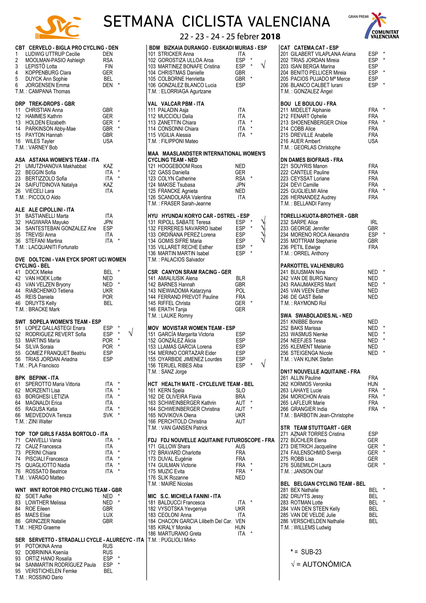 | 61. | GOMEZ FRANQUET Beatriu![]() | SOPELA WOMEN’S TEAM | 09:42:52 | ||||