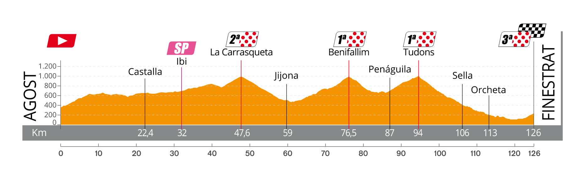 Los últimos 30 kilómetros discurrirán por Sella, Orxeta y Finestrat, donde estará situada la llegada en alto.