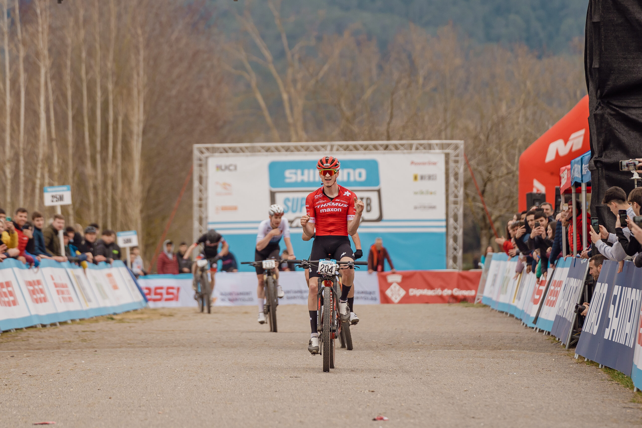 El último día de la Shimano Super Cup Massi de Banyoles sería frenético. La fina lluvia de la noche, dejaba un trazado pesado y más delicado de recorrer. Los mejores ciclistas del mundo estaban expectantes de cómo avanzaría la climatología durante el día. La jornada empezó con la prueba masculina de las UCI Junior Series. Los más jóvenes serían los encargados de abrir un circuito y comprobar los efectos del agua. El más fuerte fue Leo Lounela.