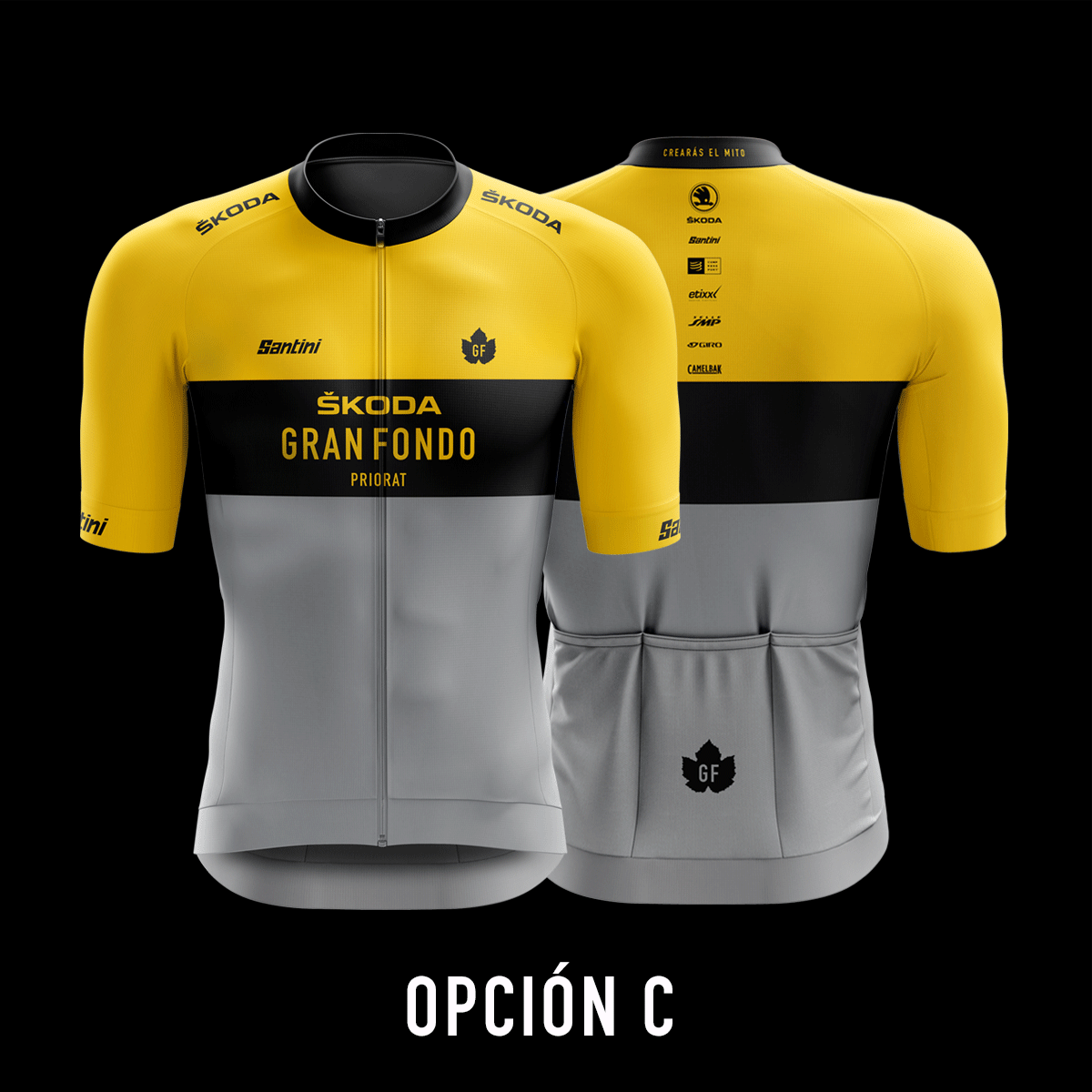 Elemento representativo de Škoda Gran Fondo Priorat, el maillot oficial es una prenda de Santini con diseño exclusivo para cada edición. Un maillot que será elegido este fin de semana (desde el viernes 18 a las 12:00 h. hasta el domingo 20 a las 24:00 h.) por los seguidores de la marcha mediante las redes sociales.