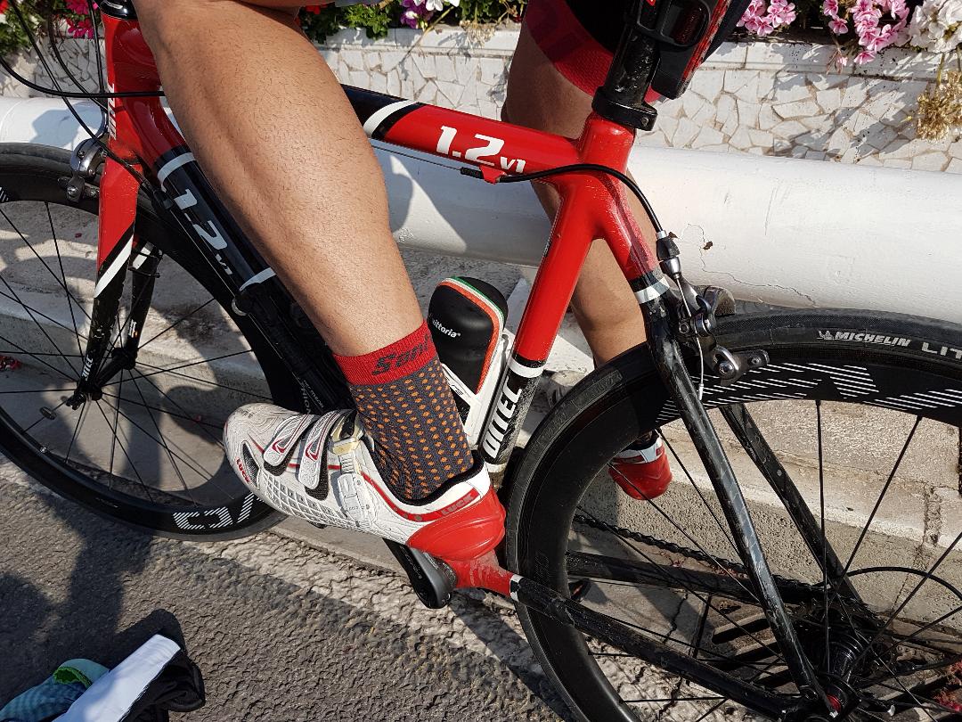Por otra parte, si tratamos la badana… Capítulo aparte merece una pieza que, ciertamente, cuando uno se apoya en el sillín piensa si será suficiente, si aguantará la kilometrada. Pues lo hace. Tanto que la primera sensación se esfuma y se destierra, y aquello se convierte en una parte eficiente y eficaz a más no poder. Son productos Santini, y eso significa hecho 100% en Italia, utilizando solo la tela italiana de la más alta calidad.
