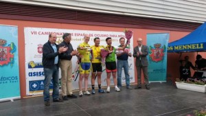 Podio máster 40, con Guallar entre Lucas y Sacristán.