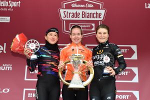 La Strade Bianche, primera carrera de la máxima categoría del año, tuvo como protagonistas iniciales a Katia Ragusa (Bepink), Sara Penton (Virtu) y Mayuko Hagiwara (Ale Cipollini), las mujeres que nada más darse el banderazo de salida oficial arrancaron para constituir la fuga inicial de la que la japonesa fue la primera en verse fuera, al no poder seguir el ritmo de sus dos compañeras de aventura por más de 5 kilómetros.