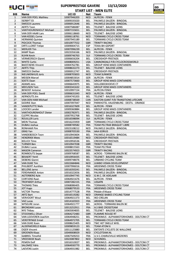 | 38 | ![]() FERDINANDE Anton | 20 | PAUWELS SAUZEN – BINGOAL | |