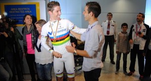 Alrededor de mil personas recibieron hoy a Rui Costa en el aeropuerto de Oporto, Portugal, vestido como campeón del mundo. «Había tenido recibimientos después de las victorias en la Vuelta a Suiza, pero lo de hoy no tiene nada que ...
