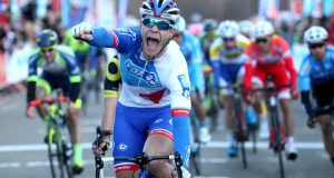 Bryan Coquard celebraba el triunfo cuando el de Cofidis le superó