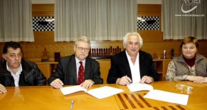 El alcalde Josep Maria Corominas, y el presidente de la Volta, Rubén Peris, firmaron en la Sala Gussinyé del Ayuntamiento de Olot el convenio de colaboración para la 95a Volta Ciclista a Catalunya. Olot una de las poblaciones con más ...