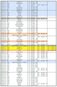 Este estudio no habría sido posible sin la cuidada recopilación de tiempos hecha por nuestro seguidor y amigo Diego_JV. Gracias a la ilusión de personas como él, merece la pena el esfuerzo de seguir difundiendo el ciclismo en pista.