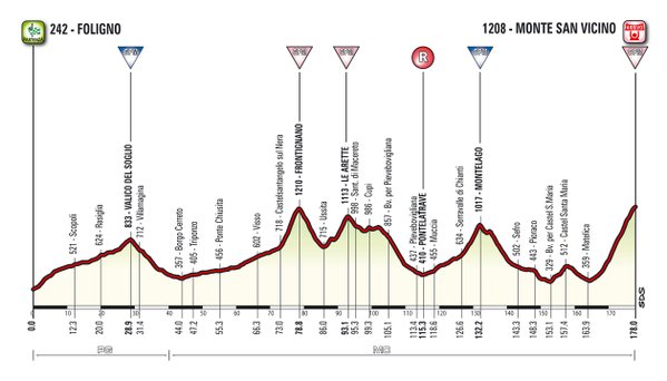Serán siete etapas que comenzarán contrarreloj, la inicial por equipos y la final individual. Los escaladores tendrán su ocasión en las llegadas a Pomarance y el Monte San Vicino en una ronda que repite formato y que premiará al más equilibrado.