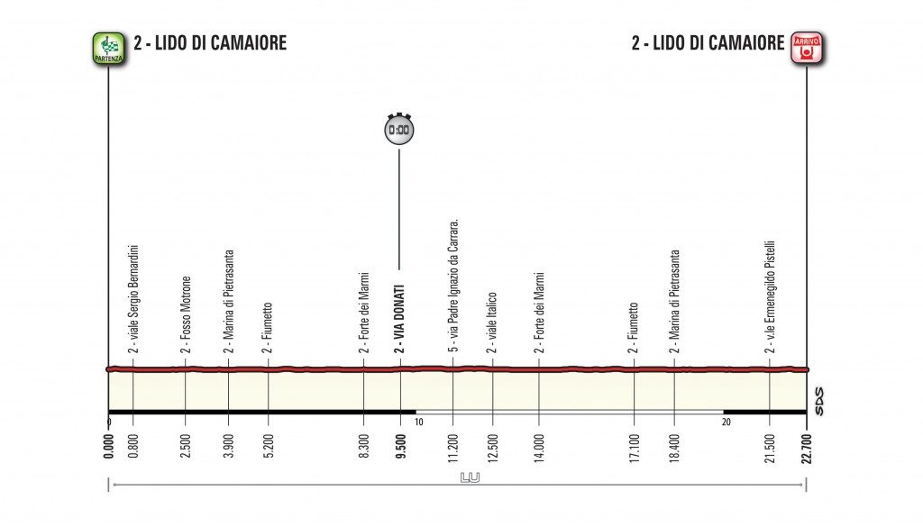 1ª: Miércoles 8 marzo. Lido di Camaiore (22,7 km contrarreloj equipos)