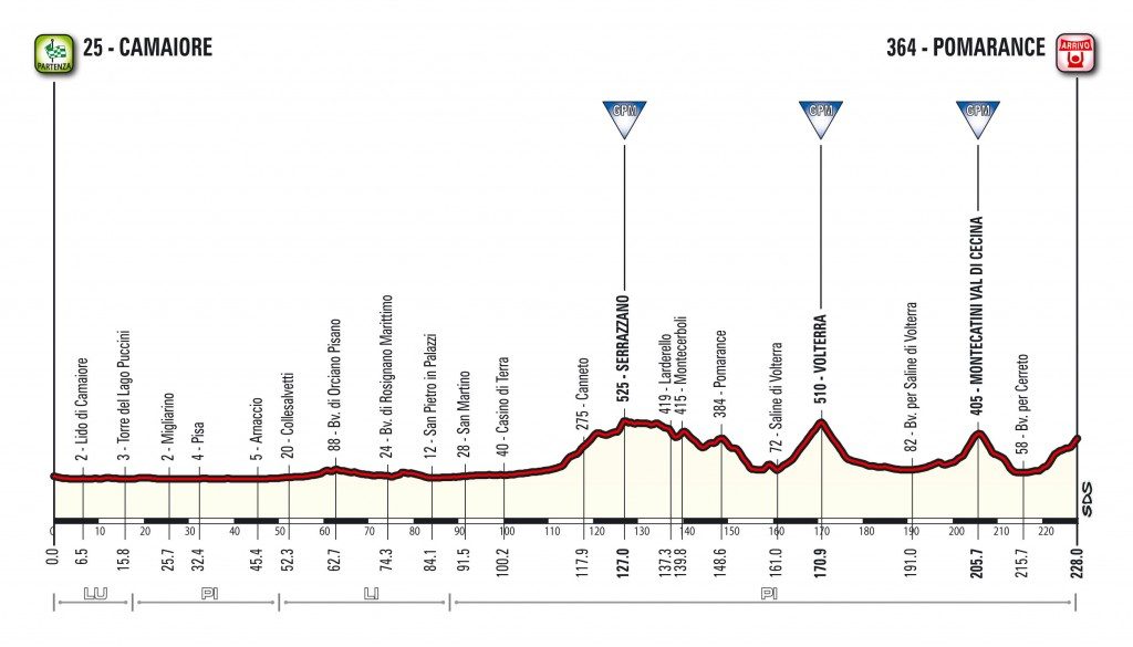 2ª: Jueves 9. Camaiore-Pomarance, 228 kms