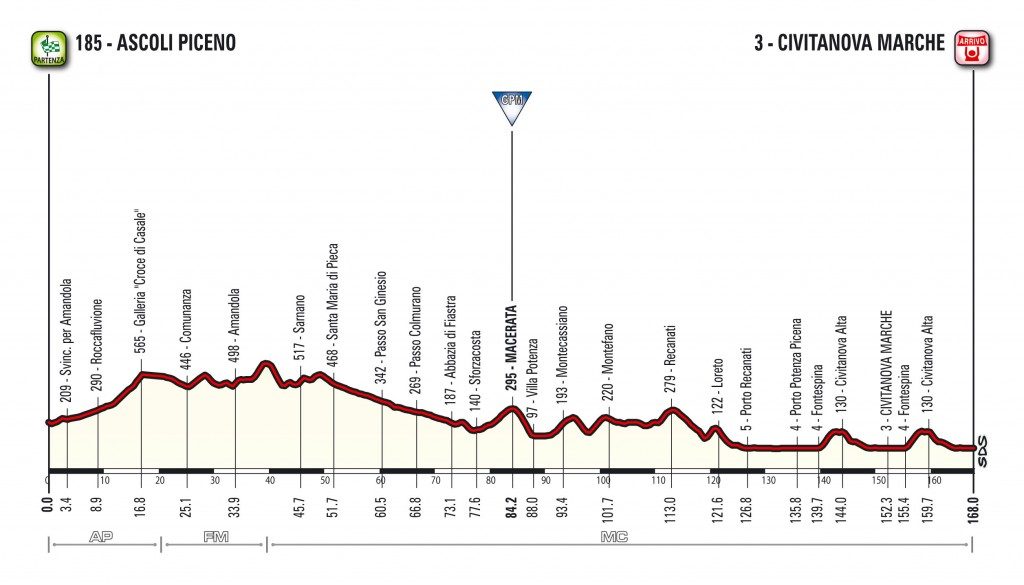 6ª: Lunes 13. Ascoli Piceno – Civitanova Marche, 168 kms