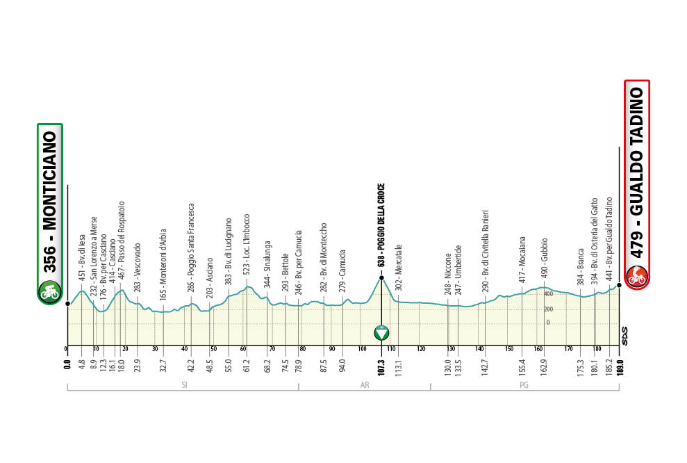 3ª: Viernes 12 marzo. Monticiano (11:00) – Gualdo Tadino (15:58) | 189 kms / RUTÓMETRO