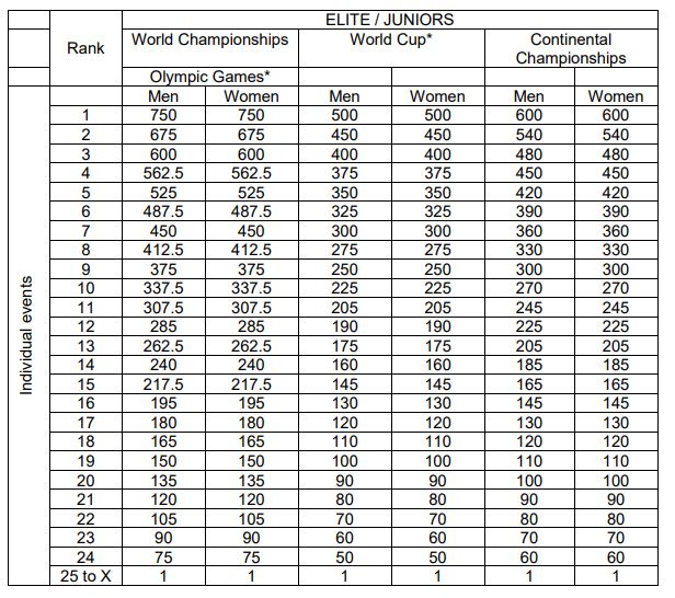 En el cuadro adjunto se puede ver el baremo de puntos en las distintas pruebas que puntúan, y en este enlace, el estado actual de cada ranking.