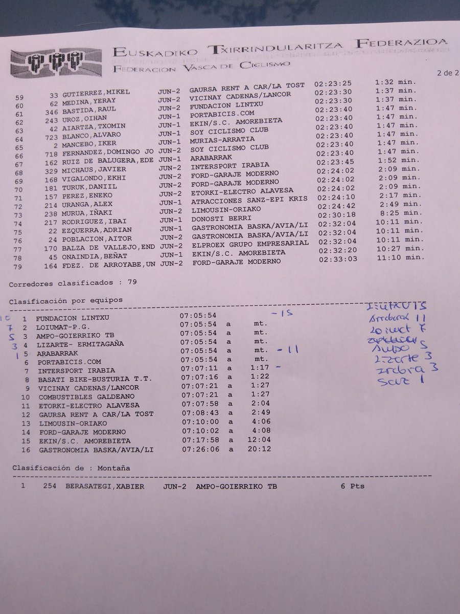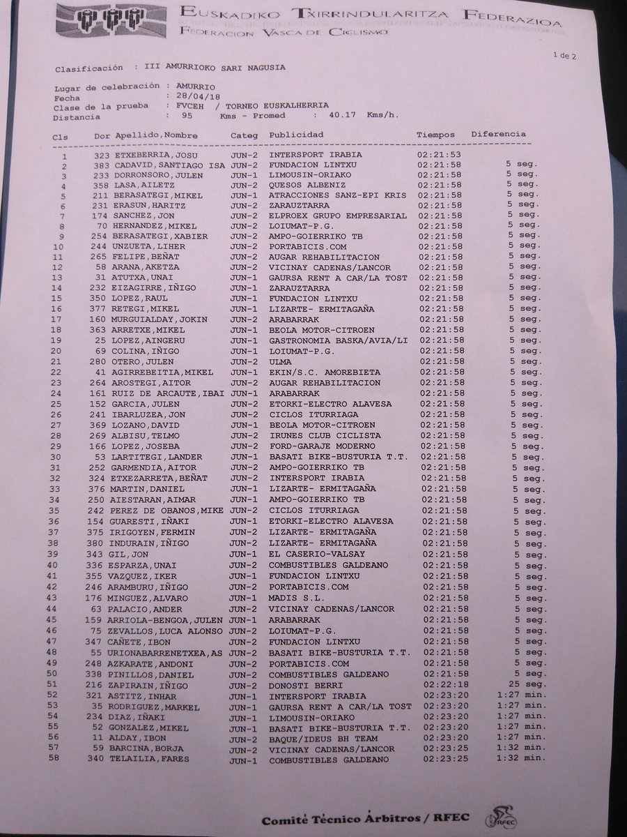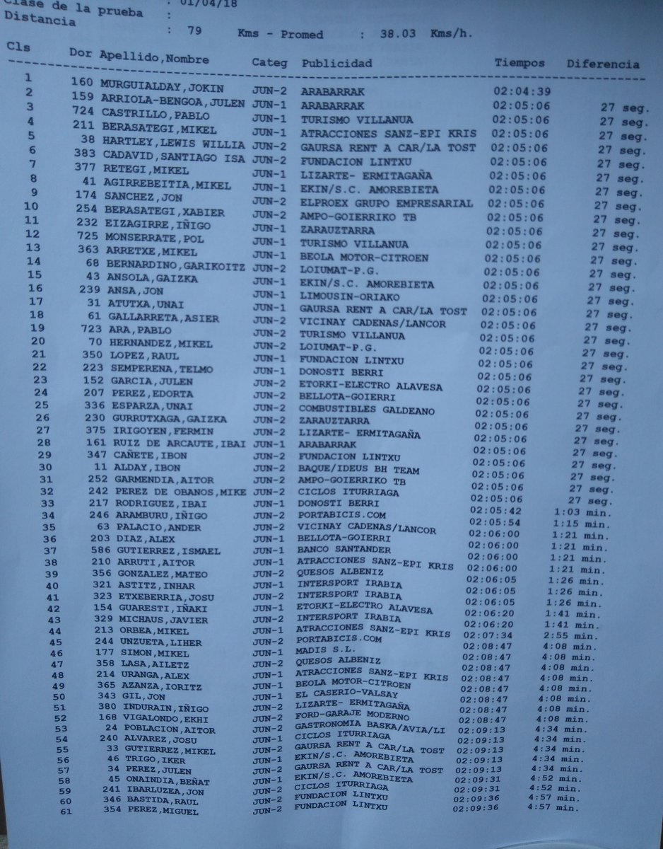1º Jon Barrenetxea (Gastronomía Baska – Avia – Liftra) 2:28:22