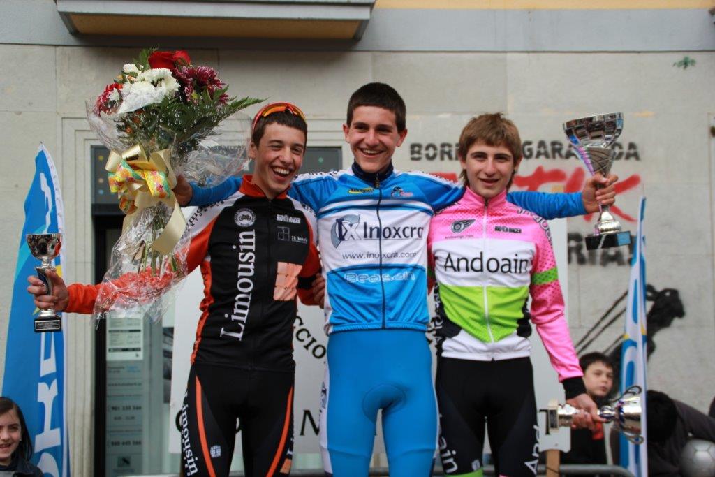 Iker Imaz (Inoxcra.com), Jokin Alberdi (Andoaingo) y Aitor Zurdo (Limousin Cartonajes) han subido por este orden al podio del 26º Premio Deba Gaztetxoak, que se ha disputado en la localidad guipuzcoana de Deba con la participación de 187 cadetes.