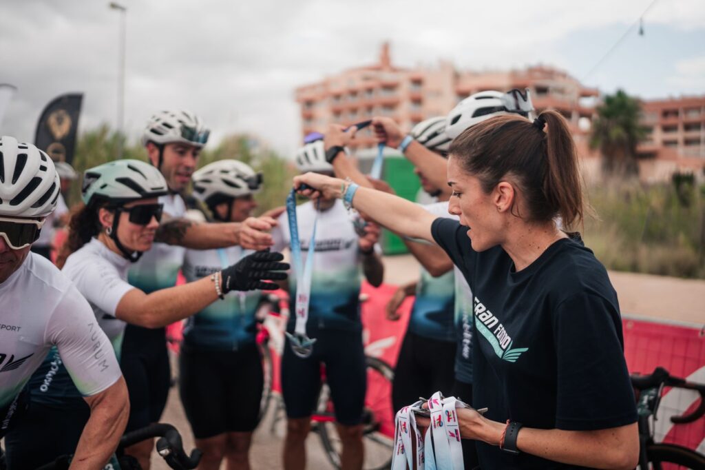 Todos los participantes han podido disfrutar de un final de fiesta y tras cruzar la línea de llegada han recibido su medalla conmemorativa que les recordará que formaron parte de la XIII TotalEnergies Gran Fondo Alberto Contador.