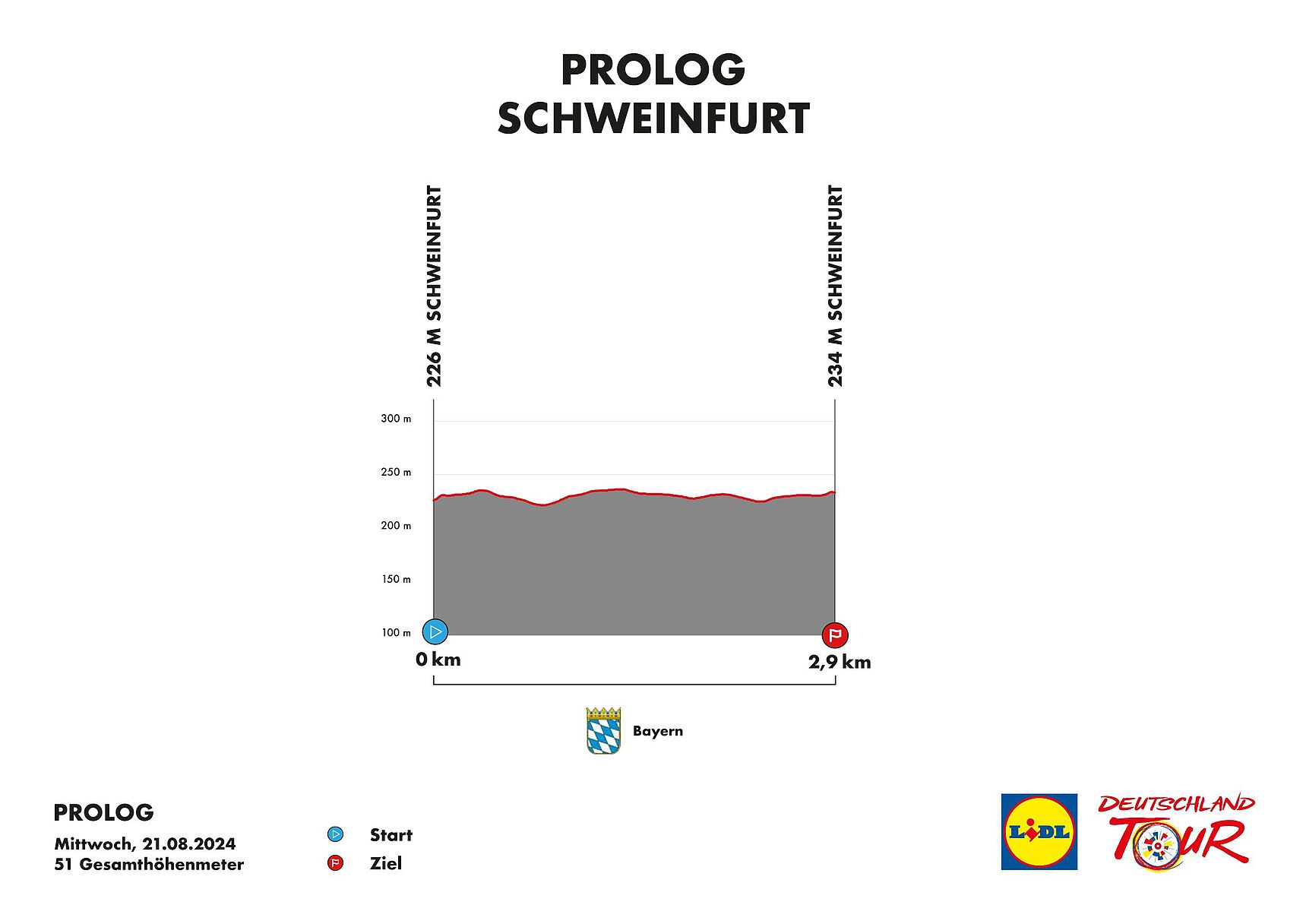 En el mercado de Schweinfurt, en el corazón del centro de la ciudad, comienza el Tour de Alemania 2024. Para dar inicio al recorrido, los profesionales darán una vuelta de casi 3 kilómetros por la ciudad de Baja Franconia. El primer tercio te anima a aumentar el ritmo con una recta larga. Al cambiar de dirección, la velocidad se reduce y va en la dirección de la recta trasera. Después de la última curva de 90 grados, un largo tramo conduce ligeramente cuesta arriba hasta la meta en Fichtelgarten. Como en años anteriores, se espera un thriller de un segundo el 21 de agosto, que decidirá la victoria del día y el primer maillot de líder del Tour Alemania en 2024.