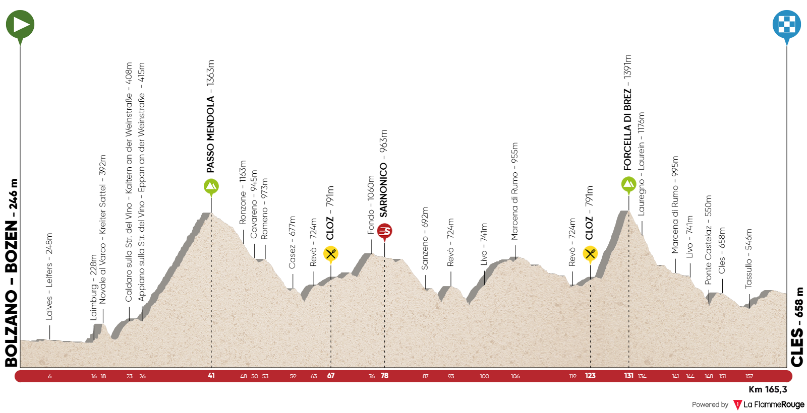 4ª: Jueves 20 abril. Bolzano-Cles (165.3 kms)