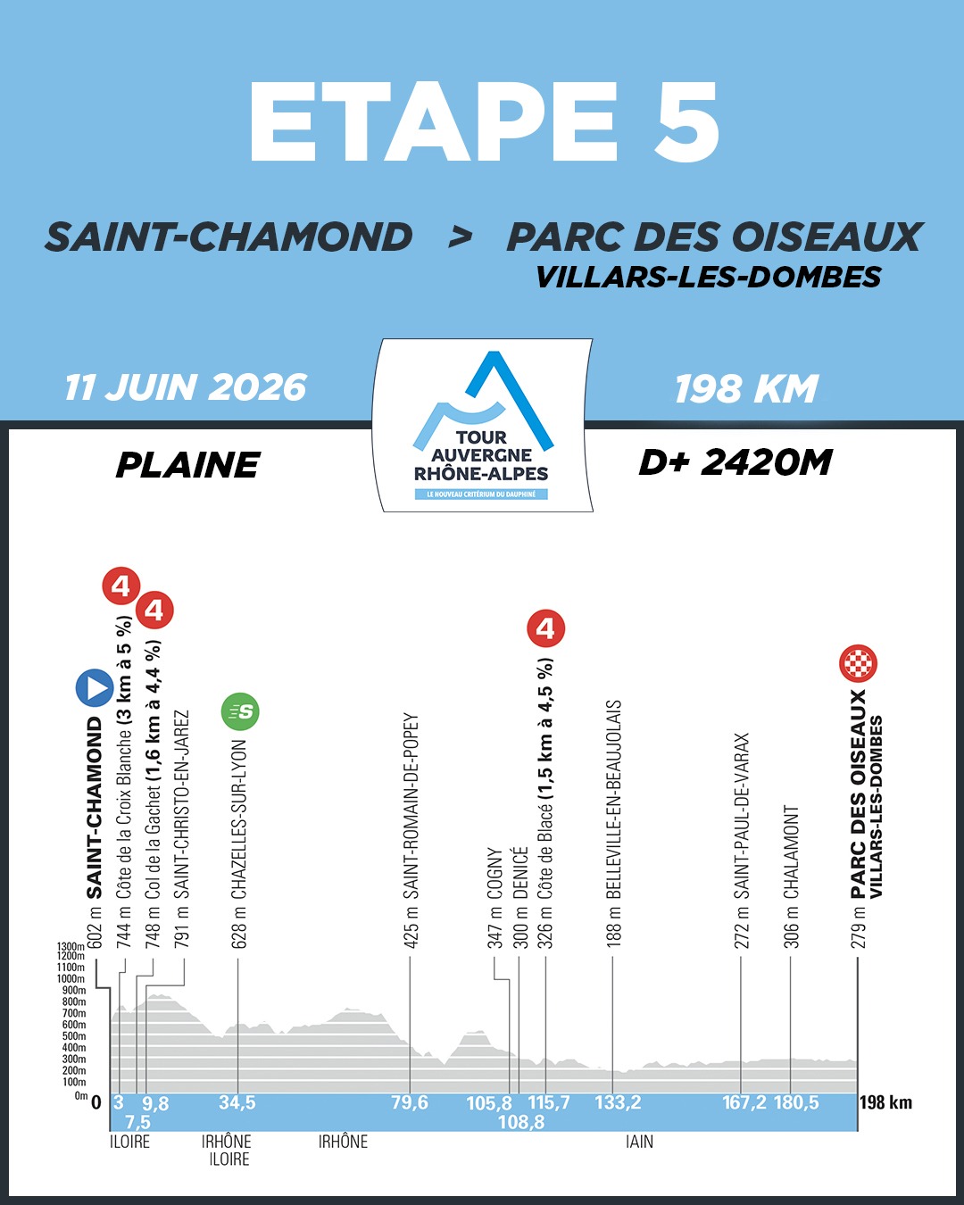 5ª: Jueves 11 junio. Saint-Chamond – Parc des Oiseaux (Villars-les-Dombes) (198 km)