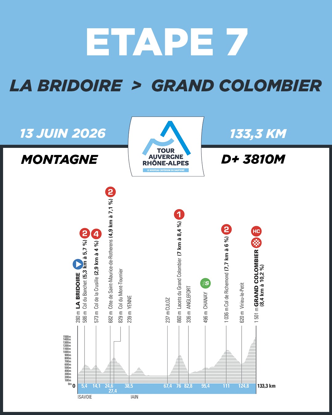 7ª: Sábado 13 junio. Le Bridoire – Grand Colombier (133,3 km)