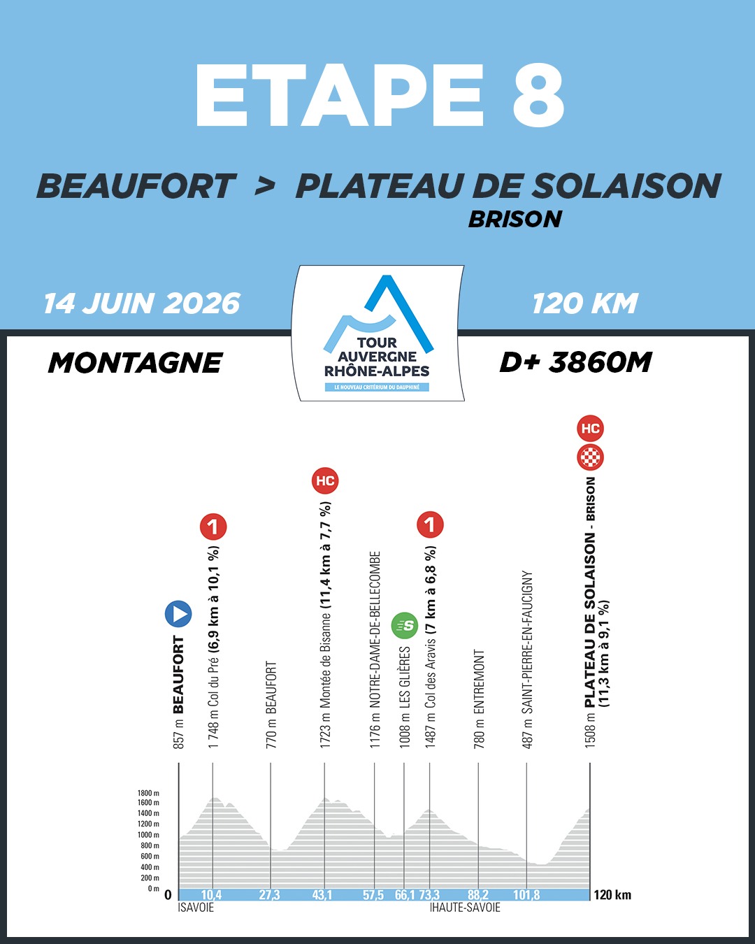 8ª: Domingo 14 junio. Beaufort – Meseta de Solaison-Brison (120 kilómetros)