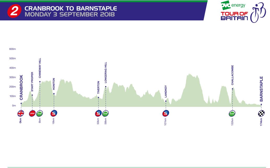 Con una etapa de 175 kilómetros y previsible llegada al sprint se estrenaba el Tour of Britain, ante la expectación levantada por la presencia del último ganador del Tour, Geraint Thomas, y del tetracampeón de la ronda francesa, Chris Froome. La etapa, empero, estuvo protagonizada por el sexteto que rodó gran parte de la carrera en fuga: Dlamini (Dimension Data), Handley (Madison Genesis), Moses (JLT Condor), Townsend (Canyon Eisberg), Downey (Team Wiggins) y Bostock (Gran Bretaña).