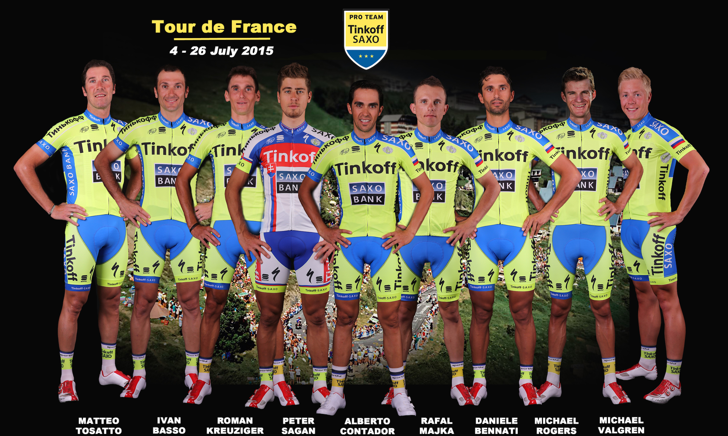 De esta forma Alberto Contador (32 años), Peter Sagan (25), el polaco Rafal Majka (25), el checo Roman Kreuziger (29), el australiano Michael Rogers (35), los italianos Ivan Basso (37), Daniele Bennati (34) y Matteo Tosatto (41) y el excampeón danés Michael Valgren (23) son los elegidos, donde no figura el otro español de la plantilla, Jesús Hernández ni ningún corredor ruso, nacionalidad de la escuadra propiedad del vehemente Oleg Tinkov.