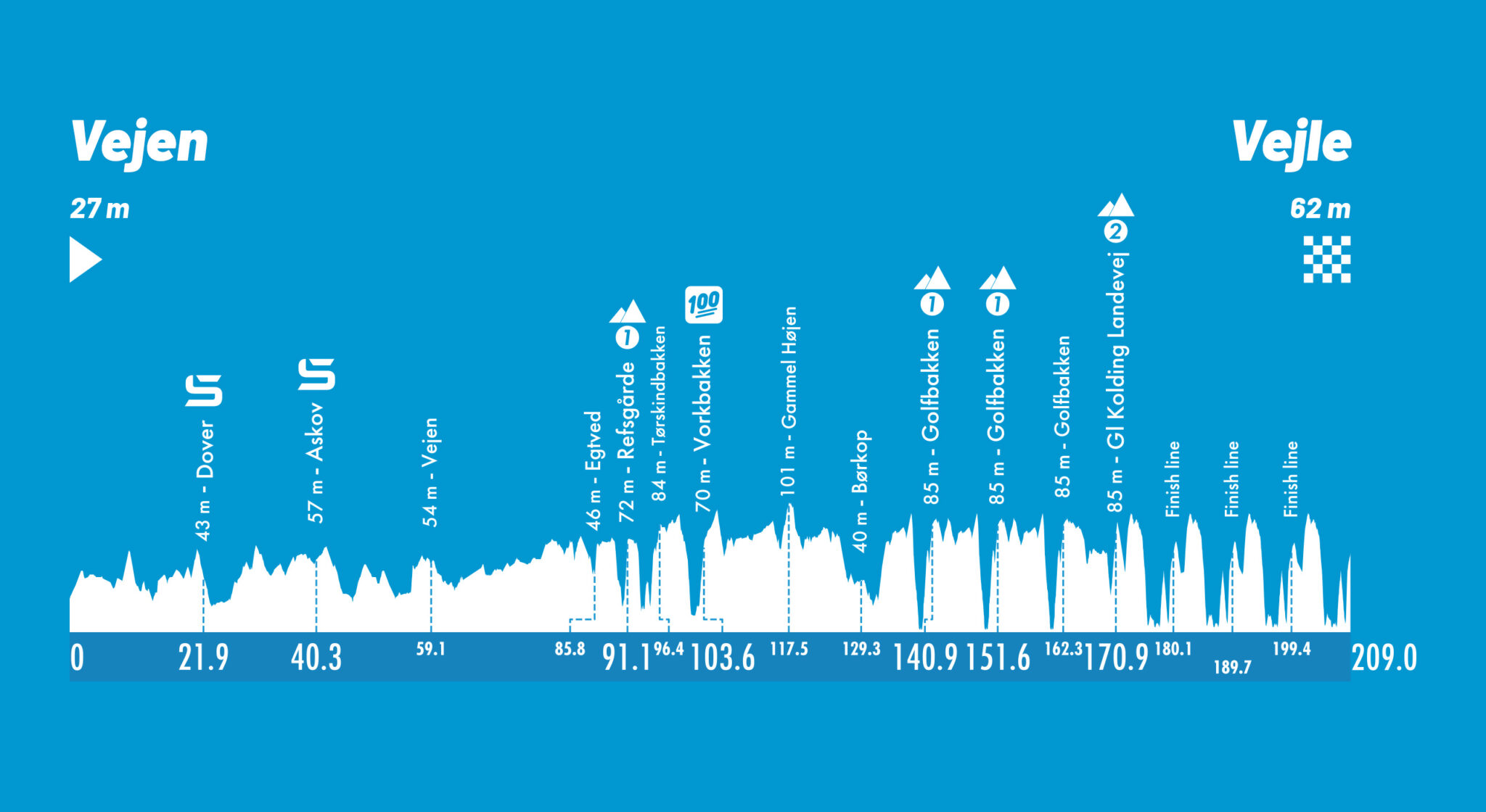 3ª etapa: Jueves 17 agosto. Vejen (13:00)-Vejle (17:45), 209 kms
