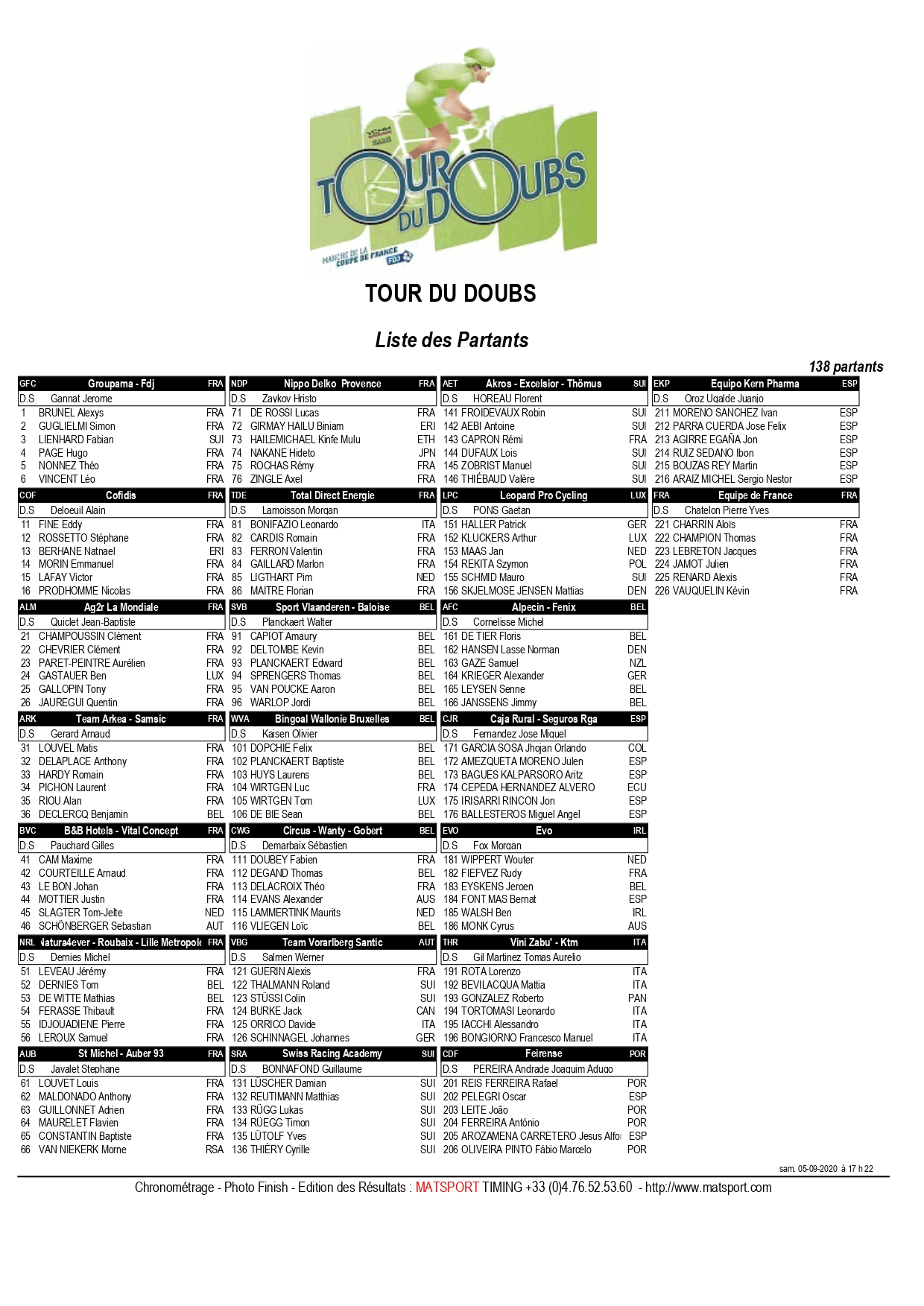 01 Loic Vliegen Circus-Wanty Gobert4:51:21 02 Biniam Girmay Nippo Delko Provence+ 14 03 Aurélien Paret-Peintre AG2R La Mondiale+ 14 04 Romain Hardy Team Arkea-Samsic+ 14 05 Alexander Krieger Alpecin-Fenix+ 22 06 Jan Maas Leopard Pro Cycling+ 22 07 Jérémy Leveau Natura4Ever-Roubaix+ 22 08 Jordi Warlop Sport Vlaanderen-Baloise+ 22 09 Baptiste Planckaert Bingoal-Wallonie Bruxelles+ 22 10 Anthony Maldonado St. Michel – Auber 93+ 22 11 Anthony Delaplace Team Arkea-Samsic+ 22 12 Senne Leysen Alpecin-Fenix+ 22 13 Benjamin Declercq Team Arkea-Samsic+ 22 14 Edward Planckaert Sport Vlaanderen-Baloise+ 22 15 Simon Guglielmi Groupama-FDJ+ 22 16 Óscar Pelegrí Feirense+ 22 17 Thomas Sprengers Sport Vlaanderen-Baloise+ 22 18 Miguel Angel Ballesteros Canovas Caja Rural-Seguros RGA+ 22 19 Léo Vincent Groupama-FDJ+ 22 20 Thibault Ferasse Natura4Ever-Roubaix+ 22 21 Sebastian Schönberger B&B Hotels-Vital Concept+ 22 22 Mattias Skjelmose Jensen Leopard Pro Cycling+ 22 23 Sean De Bie Bingoal-Wallonie Bruxelles+ 22 24 Antoine Aebi Akros – Excelsior – Thömus+ 22 25 Ben Walsh EvoPro Racing+ 22 26 Robin Froidevaux Akros – Excelsior – Thömus+ 22 27 Fabien Doubey Circus-Wanty Gobert+ 22 28 Roland Thalmann Team Vorarlberg Santic+ 22 29 José Félix Parra Equipo Kern Pharma+ 22 30 Luc Wirtgen Bingoal-Wallonie Bruxelles+ 22 31 Matthias Reutimann Swiss Racing Academy+ 22 32 Victor Lafay Cofidis+ 22 33 Mathias De Witte Natura4Ever-Roubaix+ 22 34 Romain Cardis Total Direct Energie+ 22 35 Axel Zingle Nippo Delko Provence+ 22 36 Nicolas Prodhomme Cofidis+ 22 37 Laurens Huys Bingoal-Wallonie Bruxelles+ 22 38 Aloïs CharrinFrance U23 + 22 39 Florian Maître Total Direct Energie+ 22 40 Jhojan Garcia Caja Rural-Seguros RGA+ 22 41 Clément Champoussin AG2R La Mondiale+ 22 42 Thomas Degand Circus-Wanty Gobert+ 22 43 Tom-Jelte Slagter B&B Hotels-Vital Concept+ 22 44 Kevin Deltombe Sport Vlaanderen-Baloise+ 22 45 Clément Chevrier AG2R La Mondiale+ 22 46 Francesco Bongiorno Vini Zabú-KTM+ 22 47 Valentin Ferron Total Direct Energie+ 22 48 Thomas ChampionFrance U23 + 22 49 Marlon Gaillard Total Direct Energie+ 22 50 Arthur Kluckers Leopard Pro Cycling+ 22 51 Jon Agirre Equipo Kern Pharma+ 22 52 Adrien Guillonnet St. Michel – Auber 93+ 22 53 Laurent Pichon Team Arkea-Samsic+ 22 54 Lorenzo Rota Vini Zabú-KTM+ 22 55 Tony Gallopin AG2R La Mondiale+ 22 56 Stéphane Rossetto Cofidis+ 22 57 Jimmy Janssens Alpecin-Fenix+ 34 58 Alexis Guérin Team Vorarlberg Santic+ 41 59 Felix Dopchie Bingoal-Wallonie Bruxelles+ 45 60 Jacques LebretonFrance U23 + 52 61 Hideto Nakane Nippo Delko Provence+ 1:02 62 Alexis RenardFrance U23 + 1:25 63 Lukas Rüegg Swiss Racing Academy+ 1:25 64 Ivan Moreno Equipo Kern Pharma+ 1:25 65 Aaron Van Poucke Sport Vlaanderen-Baloise+ 1:25 66 Jesus Alfonso Arozamena Carretero Feirense+ 1:25 67 Eddy Finé Cofidis+ 1:25 68 Szymon Rekita Leopard Pro Cycling+ 1:44 69 Lasse Norman Hansen Alpecin-Fenix+ 1:44 70 Emmanuel Morin Cofidis+ 1:44 71 Samuel Gaze Alpecin-Fenix+ 1:44 72 Mulu Hailemichael Nippo Delko Provence+ 1:44 73 Mattia Bevilacqua Vini Zabú-KTM+ 1:44 74 Fabio Oliveira Feirense+ 1:44 75 Bernat Font Mas EvoPro Racing+ 1:44 76 Rémi Capron Akros – Excelsior – Thömus+ 1:44 77 Flavien Maurelet St. Michel – Auber 93+ 1:44 78 Valere Thiebaud Akros – Excelsior – Thömus+ 1:44 79 Natnael Berhane Cofidis+ 1:44 80 Jon Irisarri Caja Rural-Seguros RGA+ 1:44 81 Pim Ligthart Total Direct Energie+ 1:44 82 Arnaud Courteille B&B Hotels-Vital Concept+ 1:44 83 Jeroen Eyskens EvoPro Racing+ 1:44 84 Maurits Lammertink Circus-Wanty Gobert+ 1:44 85 Aritz Bagues Caja Rural-Seguros RGA+ 1:44 86 Yves Lütolf Swiss Racing Academy+ 1:44 87 Jefferson Cepeda Caja Rural-Seguros RGA+ 1:44 88 Mauro Schmid Leopard Pro Cycling+ 1:44 89 Cyrille Thiery Swiss Racing Academy+ 1:49 90 Matis Louvel Team Arkea-Samsic+ 2:08 91 Hugo Page Groupama-FDJ+ 2:08 92 Rémy Rochas Nippo Delko Provence+ 2:08 93 Lucas De Rossi Nippo Delko Provence+ 2:08 94 Alessandro Iacchi Vini Zabú-KTM+ 2:08 95 Roberto Gonzalez Vini Zabú-KTM+ 2:36 96 Damian Lüscher Swiss Racing Academy+ 2:38 97 Colin Stüssi Team Vorarlberg Santic+ 2:38 98 Floris De Tier Alpecin-Fenix+ 3:03 99 Alexys Brunel Groupama-FDJ+ 3:26 100 Julen Amezqueta Caja Rural-Seguros RGA+ 3:30 101 Tom Dernies Natura4Ever-Roubaix+ 3:58 102 Justin Mottier B&B Hotels-Vital Concept+ 4:03 103 Ibon Ruiz Equipo Kern Pharma+ 4:03 104 Ben Gastauer AG2R La Mondiale+ 4:03 105 Rafael Reis Feirense+ 4:25 106 Samuel Leroux Natura4Ever-Roubaix+ 4:27 107 Johannes Schinnagel Team Vorarlberg Santic+ 4:27 108 Théo Nonnez Groupama-FDJ+ 4:35 109 Pierre Idjouadiene Natura4Ever-Roubaix+ 4:50 110 Wouter Wippert EvoPro Racing+ 5:09 111 Timon Rüegg Swiss Racing Academy+ 5:57 112 Fabian Lienhard Groupama-FDJ+ 5:57 113 Julien JamotFrance U23 + 5:57 114 Maxime Cam B&B Hotels-Vital Concept+ 5:57 115 Rudy Fiefvez EvoPro Racing+ 5:57 116 Louis Louvet St. Michel – Auber 93+ 5:57 117 Johan Le Bon B&B Hotels-Vital Concept+ 5:57 118 Alan Riou Team Arkea-Samsic+ 5:57 119 Théo Delacroix Circus-Wanty Gobert+ 8:59 120 Davide Orrico Team Vorarlberg Santic+ 10:26 121 Leonardo Bonifazio Total Direct Energie+ 10:26 122 Jack Burke Team Vorarlberg Santic+ 10:26 123 Antonio Ferreira Feirense+ 10:26 124 Morne Van Niekerk St. Michel – Auber 93+ 10:26 125 Kévin VauquelinFrance U23 + 10:26 126 Cyrus Monk EvoPro Racing+ 10:26 127 Baptiste Constantin St. Michel – Auber 93+ 16:51 128 Quentin Jauregui AG2R La Mondiale+ 20:05 DNF Lois Dufaux Akros – Excelsior – Thömus DNF Manuel Zobrist Akros – Excelsior – Thömus DNF Tom Wirtgen Bingoal-Wallonie Bruxelles DNF Alexander Evans Circus-Wanty Gobert DNF Sergio Araiz Equipo Kern Pharma DNF Martin Bouzas Equipo Kern Pharma DNF Joao Leite Feirense DNF Patrick Haller Leopard Pro Cycling DNF Amaury Capiot Sport Vlaanderen-Baloise DNF Leonardo Tortomasi Vini Zabú-KTM