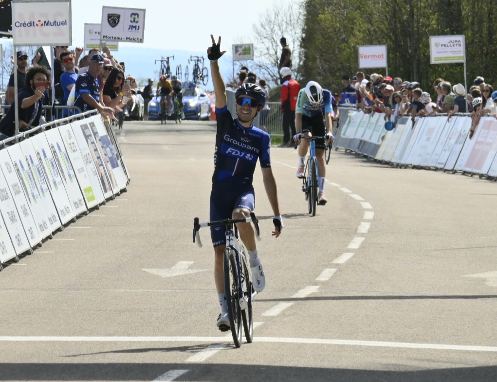 Tres de tres para el equipo Groupama en este largo fin de semana por tierras francesas. El conjunto dirigido por Marc Madiot volvió a ser el gran dominador por tercer día consecutivo, de nuevo con Lenny Martínez como el gran protagonista. El joven de 21 años fue el más fuerte en la ascensión final a Pontarlier-Le Larmont superando en tres segundos a su compatriota Clément Berthet. El ciclista del Decathlon no pudo plantarle cara al esprint a Martínez, logrando el de Groupama su cuarta triunfo de la temporada, confirmado las buenas sensaciones ya mostradas a inicios de año.