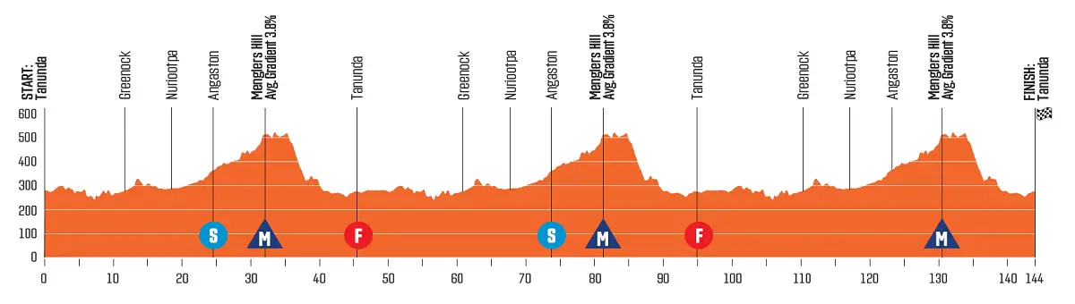 1ª: Martes 16 enero. Tanunda (1:40)-Tanunda (5:23), 144 kms