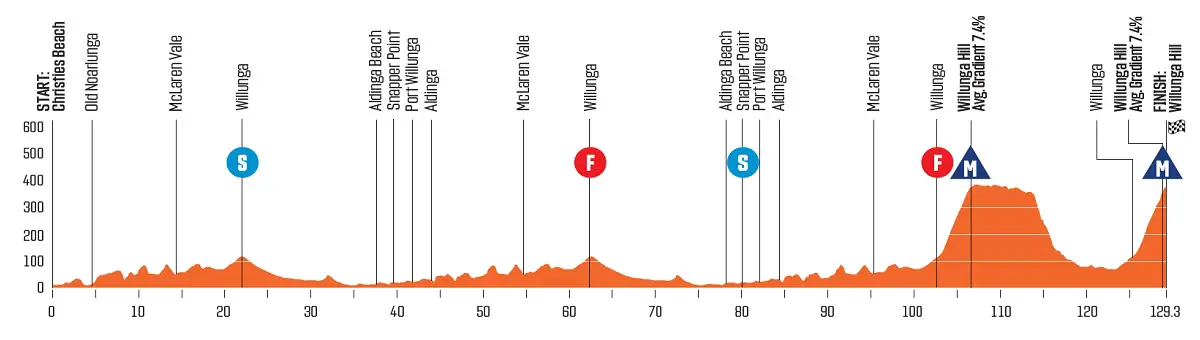 5ª: Sábado 20 enero. Christies Beach (1:40)-Willunga Hill (5:01), 129,3 kms