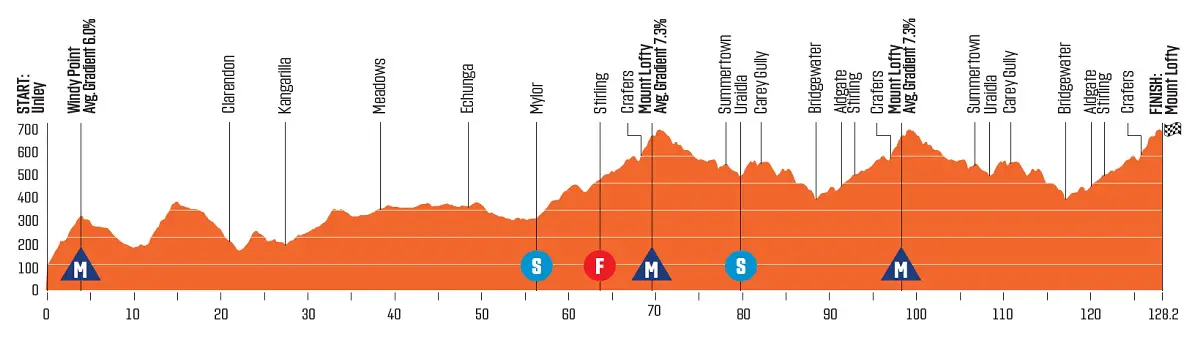 El recorrido lo componen seis etapas de poco kilometraje, alternando días de posible resolución al sprint y otros de media montaña. La carrera concluirá nuevamente con el circuito en torno al Monte Lofty y la principal novedad es el regreso de Willunga Hill, con un doble ascenso en la etapa del sábado, tras su ausencia en el recorrido de la pasada edición.