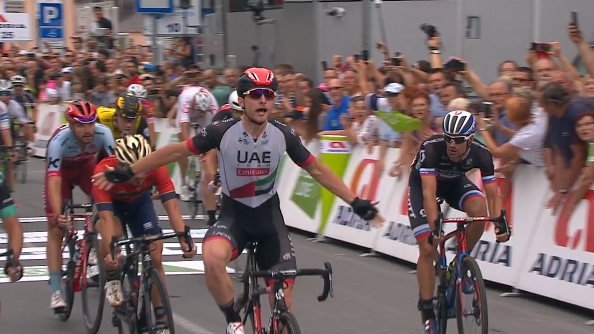 El rápido y pistard Simone Consonni redondeó el día perfecto del UAE Emirates minutos después de que su compañero y compatriota Diego Ulissi se impusiera en la etapa del Tour de Suiza. Consonni además se llevó premio doble al ser el mejor en la jornada inaugural del Tour de Eslovenia, ronda 2.1 UCI, que se prolongará hasta el domingo. Tras los 159 kilómetros entre Lendava y Murska Sobota, Niccolo Bonifazio y Luka Mezgec vieron de cerca el estreno profesional del transalpino de 23 años en su segunda campaña en la primera división.