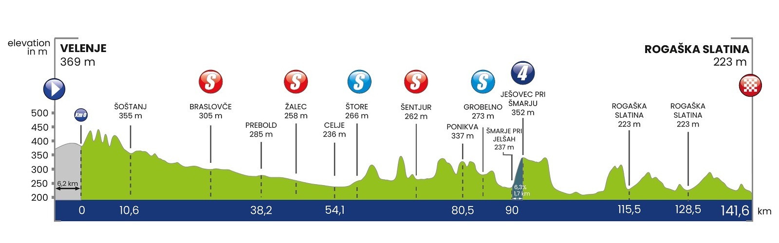 1ª (17/06): Velenje – Rogaška Slatina (141,6 km)