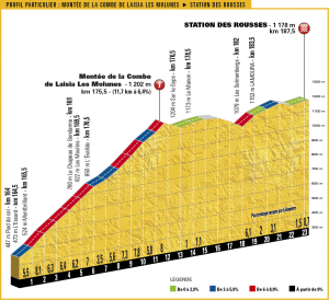 Sin cruzar la frontera española, tránsito hacia los Alpes sin parar en el recortado Mont Ventoux 2016 con la vuelta de la Croix de Fer y el Galibier en la jornada que acaba en Serre Chevalier. Será víspera del final en el mito del Izoard -14 kilómetros al 7,3 % de desnivel. Marsella, la víspera de París, decidirá al vencedor en la segunda contrarreloj individual de un Tour de apenas 23 kilómetros -con una subida de mil metros al 18%– y que concluirá en el estadio del Velódromo, donde juega el Olympique de fútbol.