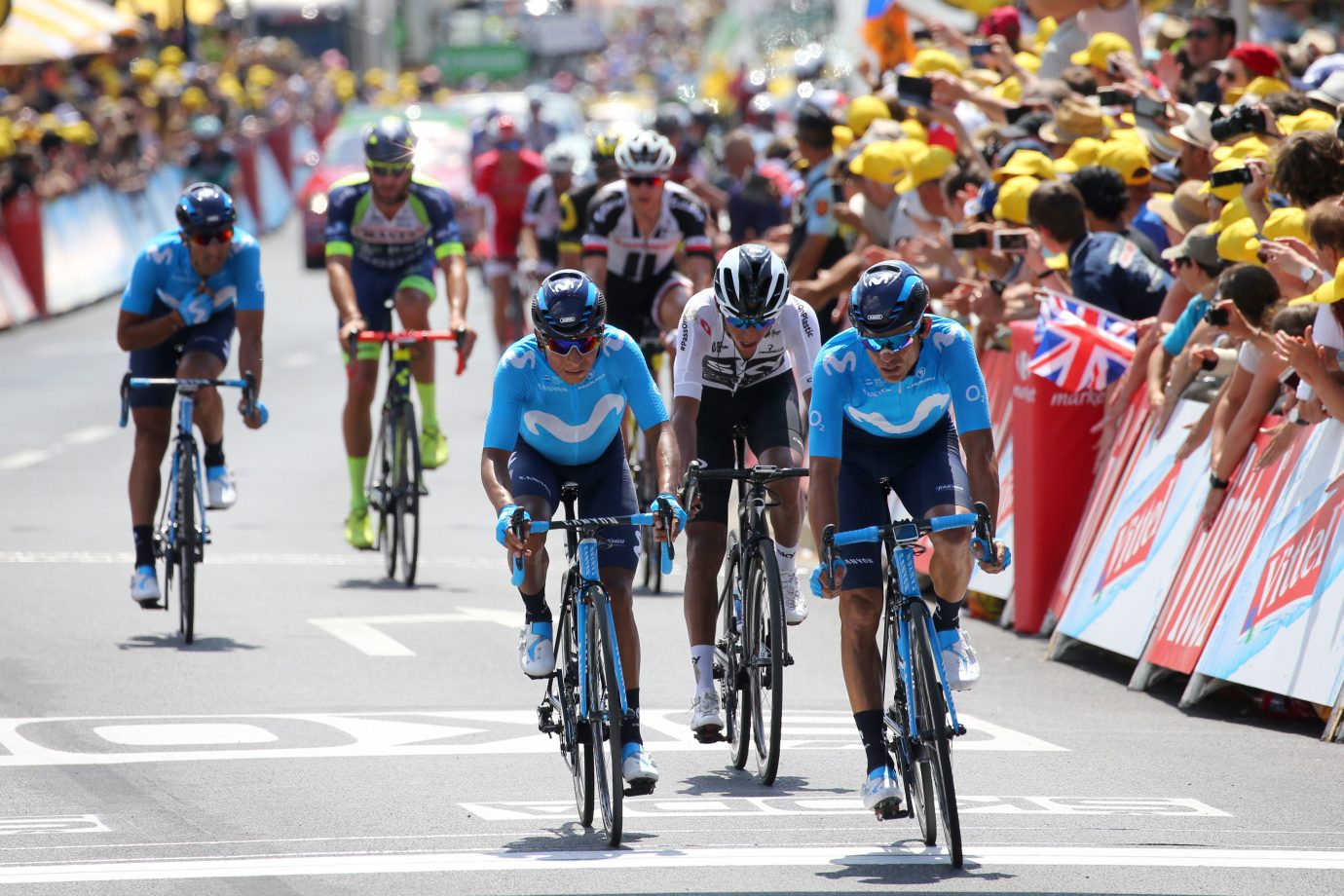 Mientras el colombiano celebraba, sonriente e incrédulo, en el podio su condición de líder de la carrera, todos miraban la composición de los grupos y, cronómetro en mano, hacían balance de daños. Quintana, que pinchó sus dos ruedas y no pudo ni tan siquiera cubrir los 400 metros que le faltaban para entrar en la zona de protección de los últimos 3 kilómetros, fue el más damnificado. El escalador colombiano se dejó la friolera de 1:15 en meta sobre un grupo principal en el que, es verdad, no estaban Froome, cuya sangría se cuantificó en 51 segundos (14 segundos menos que Nairo), ni Richie Porte (BMC) que se dejó 42 segundos en meta, pero sí estaban todos los demás. Estaba Dumoulin. Y Nibali. Y Bardet. Y, también, Valverde y Landa. Y eso, por bueno que sea para Movistar, no deja de ser un drama para el de Boyacá, que siempre dijo que sería la carretera la que pondría a cada cual en su sitio en esa pelea por los galones de jefe en el conjunto telefónico.